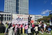 (원투원뉴스) 대전시는 579돌 한글날을 맞아 9일 시청 남문광장에서 ‘함께 한글’을 주제로 기념행사를 성황리에 개최했다. 이번 행사는 대전시가 주최하고 한남대학교 국어문화원이 주관했으며, 어린이와 가족 단위 나들이객, 대학생, 관광객 등 시민 1,000여 명이 참여해 한글의 가치와 아름다움을 함께 나누는 축제의 장이 됐다. 현장에서는 까치 호랑이 열쇠고리·민화 나무 보석함 만들기 등 전통문화 체험을 비롯해 10여 종의 만들기 교실이 운영됐다. 또한 타악기로 연주하는 K-POP 콘서트, 비눗방울 공연 등 가족 단위로 즐길 수 있는 문화공연과 한글 관련 강연 및 전시가 이어지며 뜨거운 호응을 얻었다. 특히 어린이와 학생들은 한글을 주제로 한 체험 프로그램에 직접 참여하면서 한글의 소중함을 배우고, 가족 방문객들은 포토존에서 추억을 남기며 축제 분위기를 만끽했다. 고현덕 대전시 교육정책전략국장은 “한글은 우리 문화의 원천이자 K-문화를 지탱하는 뿌리로, 세계와 소통하는 자랑스러운 언어”라며 “이번 행사가 시민들이 한글의 가치를 되새기고 한글 사랑을 생활 속에서 실천하는 계기가 되길 바란다”라고 말했다.