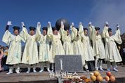 (원투원뉴스) 전북특별자치도 무주군과 경상북도 김천시, 충청북도 영동군 화합 기원제, 제37회 삼도봉 만남의 날 행사가 지난 10일 설천면 미천리 민주지산 삼도봉 정상(1,176m) 대화합 기념탑에서 개최됐다. 이날 행사는 삼도 주민들이 화합하고 지역 공동 발전의 계기를 마련한다는 취지에서 마련된 것으로, 올해는 무주군이 주최하고 (사)무주문화원이 주관했다. 행사에는 최정일 무주군 부군수와 최순고 김천부시장, 강성규 영동부군수, 오광석 무주군의회 의장을 비롯한 3개 시 · 군의회 의장과 의원들, 그리고 무주문화원 맹갑상 원장과 3개 시·군 문화원장 등 3백여 명이 자리해 삼도 화합을 기원했다. 최정일 무주군 부군수는 “해마다 10월 10일이면 삼도민이 모여 서로의 안녕과 지역의 발전을 기원하고 있다는 자체가 너무 자랑스럽다”라며 “영호남의 경계를 넘어 지속 가능한 상생의 성과를 이끌어 갈 수 있도록 협력해 나갈 것”이라고 밝혔다. 한편, 삼도봉 만남의 날 행사는 1989년 무주군의 제의로 시작돼 올해로 37회째를 맞았으며 3도 3시군 문화·체육 교류 등 다양한 협력 활동의 기반이 돼 광역행정의 모범