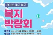 (원투원뉴스) 대구 북구청은 오는 10월 18일 오전 10시부터 오후 3시까지, 동천역 하단 팔거천 둔치에서 ‘행복을 잇는 복지, 모두의 북구’를 슬로건으로 '2025 북구 지역복지박람회'를 개최한다. 이번 박람회는 관내 사회복지기관, 단체, 공공기관, 주민이 함께 참여하는 민·관 협력형 복지 축제로, 구민이 직접 체험하고 즐기며 복지를 가까이에서 느낄 수 있는 장으로 마련됐다. 행사 당일에는 식전공연(맑은소리 하모니카 앙상블)을 시작으로 개회식 복지퍼포먼스, 각종 홍보·체험부스 40개가 운영되며, 에어바운스존·피크닉존·스탬프투어·미니게임·먹거리 부스 등 남녀노소 누구나 참여할 수 있는 다채로운 프로그램이 준비된다. 특히 23개 동 지역사회보장협의체의 특화사업 전시, 부키 룰루랄락 공연(노인복지관 합주단), IM뱅크 북구청지점의 커피차 음료 나눔 이벤트 등 지역사회가 함께 꾸미는 따뜻한 나눔의 장이 펼쳐질 예정이다. 배광식 북구청장은 “이번 복지박람회가 복지에 대한 주민들의 관심을 높이고, 민·관이 함께 소통하며 더 따뜻한 북구를 만들어가는 계기가 될 것.”이라며 “많은 주민들이 참여해 복지의 즐