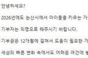 (원투원뉴스) 논산의 새해를 매년 감동으로 물들인‘익명의 기부천사’가 올해도 어김없이 찾아왔다. 지난 2020년부터 6년째 논산시에 기부를 이어온‘익명의 기부천사’는 올해도 2억 7,300만원을 기탁했으며, 총 누적기부액은 14억 9,465만원에 달한다. 기부자는 이번 기탁금을 전달하며 “세상의 빠른 변화 속에서도 어려운 여건에 놓인 아이들이 자신의 가능성을 키워갈 수 있도록 보탬이 되고 싶다”는 진심 어린 마음을 전했다. 특히, ‘우리가 있기에 내가 있다’는 뜻의 아프리카어 ‘우분투(Ubuntu)’정신을 언급하며, 개인의 행복이 공동체의 행복으로 연결된다는 공생의 가치를 강조했다. 올해는 기부자의 뜻에 따라 지원 대상과 체계가 한층 확대됐다. 기존 18세 미만 자녀를 둔 차상위계층뿐 아니라, 교육급여 수급 가구까지 포함해 총 156가구가 혜택을 받는다. 지원기간도 기존 5개월에서 12개월로 늘어나, 취약계층 아동 가구가 1년 내내 조금 더 안정된 생활을 누릴 수 있게 됐다. 백성현 논산시장은 “매년 이어지는 고액 기부에 다시 한번 감사드린다”며 “기부자님이 강