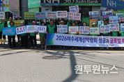 (원투원뉴스) 전남 여수시새마을회(회장 이동근)가 국제 에너지 위기 대응을 위한 에너지 절약 실천과 2026여수세계섬박람회의 성공적인 개최를 위해 거리 캠페인에 나섰다. 여수시새마을회는 지난 15일 도원사거리 일원과 새마을회관에서 회원 단체장, 청년연대, 읍면동 새마을지도자 등 50여 명이 참여한 가운데 ‘범국민 에너지 절약 실천 및 섬박람회 홍보 캠페인’을 진행했다. 이날 참가자들은 도원사거리 주요 지점에서 현수막과 피켓을 활용해 에너지 절약 동참을 독려하고 다가오는 섬박람회 개최에 대한 시민들의 관심 제고와 지역 사회 참여 분위기 확산에 힘을 보탰다. 캠페인에 앞서 오전 9시에는 새마을회관 주차장에서 ‘양파장아찌 나눔 행사’도 진행됐다. 새마을부녀회와 협의회 등 지도자 50여 명이 직접 담근 장아찌는 지역 내 취약계층에게 전달될 예정이다. 이동근 여수시새마을회장은 “이번 캠페인이 에너지 절약 의식을 높이고, 섬박람회 성공개최를 기원하는 마음을 하나로 모으는 계기가 되길 바란다”며 “앞으로도 환경보호와 나눔 실천에 앞장서는 새마을회가 되겠다”고 말했다. 한편, 여수시새마을회는 매년