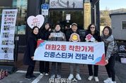 (원투원뉴스) 오산시 대원2동 행정복지센터는 지난 13일, 2026년 첫 번째 착한가게로 신규 선정된 ‘양심장어 오산청호점(엘지로 230)’에서 ‘착한날개(착한가게) 인증스티커 전달식’을 개최했다고 밝혔다. 이날 전달식에는 김소영 대원2동장을 비롯해 양심장어 오산청호점 대표와 지역사회보장협의체 위원 4명 등이 참석해 나눔의 의미를 함께 나누는 시간을 가졌다. 양심장어 오산청호점은 매월 약 25만 원 상당의 장어탕을 정기적으로 후원하기로 약속했으며, 후원 물품은 식생활에 어려움을 겪고 있는 관내 취약계층에게 전달돼 따뜻한 한 끼와 함께 지역사회의 온정을 전할 예정이다. 양심장어 오산청호점 대표는 “주변의 어려운 이웃들에게 작은 보탬이 되기를 바라는 마음으로 후원을 결정했다”며 “이번 나눔이 취약계층에게 따뜻한 식사가 되길 바라며, 앞으로도 지속적인 나눔 활동에 함께하겠다”고 말했다. 김소영 대원2동장은 “어려운 여건 속에서도 정기적인 나눔을 실천해 주신 양심장어 오산청호점에 깊이 감사드린다”며 “착한가게 참여가 지역사회 전반에 나눔 문화로 확산될 수 있도록 행정적 지원과 노력을 이어가겠다”고 밝혔다.
