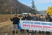 (원투원뉴스) 영덕교육지원청은 11월 24일과 11월 28일 2일간 (구)강구초등학교직천분교장 및 영덕오토캠핑장에서 관내 초·중학교 및 영덕교육지원청 시설관리직 6명이 2025년 '행복동행 시설관리지원단'지원 활동을 실시했다. 이번 지원 활동은 (구)강구초등학교직천분교장 폐교를 활용한 영덕교육지원청 생태학습체험장과 경상북도교육청영덕오토캠핑장의 제초작업, 수목전지 등 주변 환경 정비를 실시했다. 시설관리지원단 팀장(병곡중 김진호)은 “시설관리 전문성을 가진 팀원들이 환경 정비에 적극적으로 참여해 서로 유대감도 높이고 실질적인 교육환경 개선 활동에 참여할 수 있어서 보람을 느끼며 매년 적극적으로 참여 하겠다.”고 했다. 이성호 교육장은“시설관리지원단이 솔선수범하여 앞장서서 쾌적한 환경을 만들어 주어 감사하며 예산절감을 하는 모범적인 사례로 교육 환경개선이 지속적이고 체계적인 운영이 지속될 수 있도록 다 같이 노력하자.”고 당부했다.