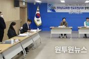 (원투원뉴스) 전라남도교육청과 전국교직원노동조합 전남지부는 28일 전라남도교육청 중회의실에서 노사 양측 관계자들이 참석한 가운데 ‘2025년 정책협의회 체결식’을 가졌다. 노·사 양측은 이번 정책협의를 통해 ▲ 저경력교사 처우개선 ▲ 현장체험학습 업무경감 ▲ 교권보호위원회 운영 내실화 ▲ 학교업무 정상화 등 45개 의제에 합의했다. 양측은 학교 현장 중심의 교육환경 개선을 위해 8차에 걸친 심도 있는 논의를 통해 교사의 목소리를 정책에 반영하고, 상호 신뢰를 바탕으로 합의를 이끌어냈다. 특히, 현장의 여건을 반영한 교육정책 수립과 교육활동 보호 등 현장에서 절실히 요구되는 어려움을 해결하는 데 중점을 뒀다. 김대중 교육감은 “노·사간 정책협의는 학교 현장의 목소리를 충실히 반영하기 위한 실질적인 변화의 출발점”이라며 “교사가 행복하고 학생이 성장할 수 있는 교육환경을 조성하고, 공생하는 글로컬 전남교육 실현을 위해 지속적으로 노력하겠다.”고 말했다. 신왕식 지부장은 “이번 정책협의회가 잘 이루어 질 수 있도록 교사들의 목소리를 경청하여 주신 교육청 관계자에게 감사드린다.”며 “현장에 묻고 현장에서
