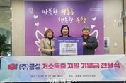 (원투원뉴스) 안양시 동안구 평촌동 행정복지센터는 관내 건설자재 제조업체인 ㈜금성이 지난 27일 관내 어려운 이웃을 위해 사용해달라며 성금 1천만원을 센터에 기탁했다고 28일 밝혔다. 이번 기탁은 기업 이윤의 사회적 환원을 실천하고자 하는 송 대표와 임직원들의 뜻에 따라 이뤄졌다. 송 대표는“기탁한 성금이 한부모가정과 홀몸 어르신 등 취약계층이 따뜻한 연말을 보내는 데 보탬이 되길 바란다”며, “앞으로도 주변의 어려운 이웃들을 돌아보고, 지역사회에 꾸준히 공헌하는 기업이 되도록 노력하겠다”고 말했다. 강윤덕 평촌동장은“이웃돕기 성금을 기탁해주신 ㈜금성에 감사드리며, 기탁된 성금은 ㈜금성 모든 임직원들의 소중한 마음을 담아 관내 어려운 이웃들이 따뜻하고 행복한 연말연시를 지내실 수 있도록 잘 전달하겠다”고 말했다. 한편, ㈜금성은 임직원 수 40여 명의 평촌동 관내 중소기업으로 금속구조물, 창호공사 등의 사업을 영위하며, 기본에 충실함을 바탕으로 성실과 책임시공을 통해 고객만족을 추구한다는 경영방침 아래 활발한 기업활동을 하고 있다.