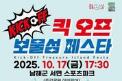 (원투원뉴스) 남해군은 오는 17일 오후 5시 30분 서면 스포츠파크(조각공원 야외무대)에서 ‘킥 오프! 보물섬 페스타’를 개최한다고 밝혔다. 이번 행사는 경남 문화예술주간(GAW) 및 10월 ‘문화의 달’을 기념해 마련됐으며, 군민에게 다채로운 문화 향유 기회를 제공하고 청소년을 비롯한 지역 주민이 함께 어울릴 수 있는 무대를 선보일 예정이다. 이날 페스타에서는 △혼성그룹 비스타 △K-pop 밴드 옐로은 △가수 김나현 등이 K-pop 과 대중가요 공연을 선보인다. 또한 남해고 HYPE와 김해 디스펙트럼 등 청소년 댄스팀이 출연해 흥겨운 무대를 꾸민다. 또한 지난 6월 개관한 보물섬FC 클럽하우스 축구부원들이 특별 댄스 공연을 준비해 관객들의 기대감을 더욱 높이고 있다. 김지영 남해군 문화체육과장은 “킥 오프! 보물섬 페스타는 군민 모두가 즐길 수 있는 청춘·열정·화합의 무대가 될 것”이라며, “음악과 춤이 어우러진 공연을 통해 세대 간 공감과 소통의 장을 만들 것으로 기대되니 많은 분들이 함께해 주시면 좋겠다”고 밝혔다.