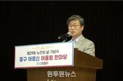 (원투원뉴스) 서울 중구가 제29회 노인의 날(10월 2일)을 기념해 지난 2일 중구 구민회관 대강당에서 기념식과 함께 어르신 어울림 한마당을 열었다. 이날 행사에는 어르신과 내빈 등 500여 명이 참석해 어르신들에 대한 노고에 존경과 감사를 표했다. 1부에서는 노인 복지와 지역 발전을 위해 헌신하신 65세 이상 모범어르신 3명과 노인복지 기여자 9명, 기여 단체 1곳에 표창이 수여됐다. 2부 행사에서는 초대가수 축하공연과 어르신 장기자랑이 펼쳐졌다. 어르신으로 구성된 11팀이 무대에 올라 노래와 악기 연주 실력을 뽐내며 흥겨운 시간을 만들었다. 김 구청장도 '고맙소'라는 노래를 불러 어르신들의 호응을 얻었다. 행사장 로비에는 영양 건강 체험 부스가 마련되어 어르신들이 드신 식사의 칼로리와 나트륨양 등을 직접 계산해보고 균형잡힌 식사법에 대한 상담도 받을수 있었으며, 추척사진관 부스에서는 교복을 입고 사진을 찍으며 옛 추억을 떠올렸다. 행사에는 한국삭도공업주식회사, 대신자산신탁, 한마음라이온스, 중구자원봉사센터를 비롯한 여러 업체와 기관이 경품, 기념품, 간식 등을 후원해 더욱 풍성하게 진행됐다.