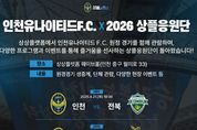 (원투원뉴스) 인천관광공사는 인천유나이티드와 함께 ‘인천유나이티드F.C. X 2026 상플응원단’을 공동 개최한다고 밝혔다. 이번 행사는 원정경기 현장 방문이 어려운 시민과 축구 팬들이 도심 속에서 함께 경기를 관람하고 응원할 수 있도록 기획된 프로그램으로, 지역 내 새로운 스포츠 문화 콘텐츠로 자리매김할 것으로 기대된다. 행사는 인천 중구 상상플랫폼 웨이브홀에서 총 5회에 걸쳐 진행된다. 오는 4월 21일 전북현대와의 원정경기를 시작으로 ▲5월 5일 대전 하나시티즌전 ▲8월 2일 제주SK FC전 ▲8월 23일 광주FC전 ▲9월 12일 울산HD FC전 등 주요 원정경기 일정에 맞춰 운영될 예정이다. 행사 현장에서는 원정경기 생중계와 함께 다양한 시민 참여형 프로그램이 마련된다. 스코어 및 득점자 예측 이벤트를 비롯해 하프타임에는 응원가ㆍ선수 맞히기 등 관람객이 함께 즐길 수 있는 참여형 이벤트가 진행된다. 당첨자에게는 인천유나이티드 홈경기 예매권과 구단 MD 상품 등 다양한 경품이 제공되며, 현장에는 구단 MD 판매 부스도 함께 운영된다. 인천관광공사는 이번 프로그램을 통