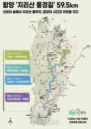 (원투원뉴스) 함양군의 ‘지리산 풍경길’이 국토교통부가 처음 시행한 ‘대한민국 관광도로’ 국내 1호로 선정됐다. 국토교통부는 13일, ‘대한민국 관광도로’ 선정을 위해 전국 지자체에서 접수된후보 노선중 1차 서면평가를 통과한 10개 후보 노선에 대한 2차 현장평가를 통해 ‘지리산 풍경길’을 가장 아름답고 우수한 도로로 평가하고 최종적으로 관광도로로 지정했다고 발표했다. 특히, 지난 9월 진행된 2차 현장평가에서는 진병영 함양군수가 직접 현장에서 함양군 도로의 특징과 관광 자원에 대해 설명하고 답변을 진행하며 심사위원들로부터 높은 평가를 받았다. ‘지리산 풍경길’은 총연장 59.5km로, 지리산 마천 백무동에서 출발해 오도재, 상림공원, 대봉산휴양밸리, 지곡 개평마을, 거연정 등을 거치는 경로로, 아름다운 자연과 풍부한 문화유산이 어우러진 길이다. 이 길은 산과 숲, 전통문화와 현대적 휴양 자원이 조화를 이루며, 함양군의 주요 관광 자원인 지리산, 상림공원, 대봉산휴양밸리, 개평한옥마을 등 풍부한 자연과 문화를 즐길 기회를 제공한다. ‘지리산 풍경길’은 4개의 코스로 나뉘며, 각 코스는