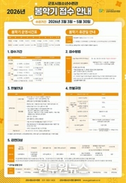 (원투원뉴스) (재)군포시청소년재단 군포시청소년수련관은 오는 2026년 3월 3일부터 5월 30일까지 ‘2026년 봄학기 문화체육 프로그램’을 운영하며, 2월 26일부터 신규 수강생 접수를 시작한다. 신규 접수 일정 교육·건강 프로그램 : 2월 26일 09:00 ~ 2월 28일 수영 프로그램 : 2월 27일 09:00 ~ 2월 28일 접수방법 : 온·오프라인 동시 접수 ※ 선착순 접수로 조기 마감될 수 있음 이번 봄학기에는 총 242개 강좌가 개설되며, ▲교육문화 105개 ▲건강체육 58개 ▲수영 79개 프로그램으로 구성된다. 청소년부터 성인까지 전 세대가 참여할 수 있도록 폭넓은 프로그램을 마련해 시민들의 여가 활동과 평생학습 기회를 확대할 예정이다. 교육문화 분야는 미술·음악·어학·요리 등 다양한 체험형 강좌로 구성되며, 건강체육 분야는 요가·필라테스·댄스 등 일상 속 건강 증진 프로그램을 운영한다. 수영 프로그램은 연령·수준별 맞춤형 반으로 편성해 체계적인 교육을 제공할 계획이다. 군포시청소년수련관 박윤정 관장은 “시민 누구나 배움과 건강을 동시에 누릴 수 있도록 준비했다”며 “접수 일정에 맞