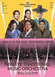 (원투원뉴스) (재)대구문화예술진흥원 대구콘서트하우스는 오는 11월 18일 저녁 7시 30분, 그랜드홀에서 ‘2025 월드오케스트라페스티벌’의 특별한 무대로 ‘영동군 난계국악단’의 공연을 개최한다. ‘2025 월드오케스트라페스티벌’이 막바지에 접어든 가운데, 전통의 울림을 담은 오케스트라가 출연해 축제의 분위기를 한층 고조시킨다. 무대에 오르는 영동군 난계국악단은 한국적 정서를 품은 국악의 진수를 선보일 예정이다. 우리나라 최초 군립 국악관현악단인 영동 난계국악단은 대한민국 3대 악성 중 한 분인 난계 박연선생의 예술정신을 계승 발전시키는 것을 목표로 1991년 5월 창단돼 올해로 34년을 맞이했다. 현재 이현창 상임지휘자를 포함해 44명의 단원이 활동 중이며 전통, 창작 레퍼토리로 연간 100회 이상의 공연을 통해 관객들을 만나고 있다. 다수의 해외 공연과 서울을 포함한 지방을 아우르는 무대 활동을 통해서 국악의 수도 영동군을 알리고 나아가 우리나라 대표 국악단으로의 역할을 강화하고 있다. 이번 공연은 한국적 정서와 현대적 감각이 조화를 이루는 국악관현악의 진수를 선보
