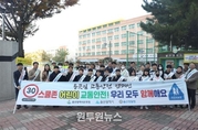 (원투원뉴스) 울산광역시교육청은 6일 오전 8시에 울주군 울주명지초등학교 앞 어린이보호구역에서 ‘민·관·경이 함께하는 등굣길 교통안전 홍보 활동(캠페인)’을 펼쳤다. 이번 홍보 활동은 지역사회 협력으로 어린이보호구역 내 교통사고를 예방하고, 학생이 안심하고 학교에 다닐 수 있는 교통안전 문화를 확산하고자 마련됐다. 이날 행사에는 천창수 교육감을 비롯해 김종훈 울산광역시의회 의원, 울산시청, 울주군청, 울산울주경찰서, 강남교육지원청 관계자와 울주명지초등학교 학생과 교직원 등 50여 명이 함께했다. 참여자들은 어깨띠를 두르고 학교 정문에서 출발해 인근 횡단보도와 아파트 단지 주변을 돌며 교통안전 홍보 활동을 벌였다. 무인단속카메라, 신호기, 보도 안전울타리 등 보호구역 내 안전시설을 점검하고, 등굣길 학생들에게 교통안전 홍보 스티커가 부착된 구급함 밴드 세트와 교통안전 안내문을 나눠줬다. 현장에서는 학생들에게 ‘어린이 안전 수칙 일이삼사(일단 멈춤, 이쪽저쪽 살피기, 삼 초 동안 주의, 사고 예방)’ 등의 보행 수칙을 알리고, 시민들에게는 ‘안전속도 5030’, ‘어린이보호구역 횡단보도,