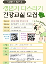 (원투원뉴스) 전남 나주시보건소가 갱년기 증상을 겪고 있는 중장년의 건강 증진을 위해 ‘2026년 상반기 갱년기 다스리기 건강교실’ 참여자를 모집한다. 이번 건강 교실은 갱년기로 인한 신체·정신적 변화를 건강하게 관리할 수 있도록 한의약 기반 건강교육과 다양한 체험형 프로그램을 제공하는 것이 특징이다. 모집 대상은 갱년기 증상을 겪고 있는 40~64세 중장년 60명으로 운영 장소별로 각 30명씩 선착순 모집한다. 참여 신청은 오는 9일부터 13일까지 5일간 진행되며 QR코드 또는 URL을 통한 온라인 접수만 가능하다. 프로그램은 3월 3일부터 5월 15일까지 주 1회, 총 10회 과정으로 운영되며 나주시보건소에서는 매주 화요일, 빛가람건강생활지원센터에서는 매주 금요일에 각각 진행된다. 주요 내용으로는 한의약적 갱년기 건강관리 교육, 한방용품 만들기, 웰다잉 교육, 기공체조·리듬댄스 등 신체활동, 웃음치료, 힐링 원예체험, 아로마테라피 등이 포함된다. 또한 참여자를 대상으로 사전·사후 건강평가(혈압·혈당·콜레스테롤 검사, 갱년기 지수, 우울증 선별검사 등)를 실시하며 검사 결