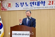 (원투원뉴스) 김완근 제주시장은 2월 11일 조천주민교류센터 회의실에서 열린 제21기 동부노인대학 졸업식에 참석해 축하 인사를 전했다. 이번 졸업식은 졸업생 32명과 내빈 등이 참석한 가운데 학사보고, 졸업증서 수여, 표창 수여, 축사 등의 순서로 진행됐다. 제주시 동부노인대학은 2년 과정의 교육프로그램으로, 어르신들의 삶의 질을 높이고 건강한 노후 생활을 지원하기 위해 운영되고 있다. 프로그램은 매주 화요일과 수요일 2시간씩 진행되며, 노인 교양, 건강관리, 정치·사회·시사 상식, 문화 체험 활동 등 다양한 내용으로 구성돼 있다. 김완근 제주시장은 “노인대학을 졸업하신 여러분께 진심으로 축하의 말씀을 드리고, 나이를 뛰어넘는 여러분의 열정과 도전은 우리 모두에게 큰 울림을 주고 있다”며, “병오년 새해 배움의 기쁨이 여러분의 삶의 버팀목이자 활력이 되어 언제나 건강하고 행복한 나날을 이어가시길 바란다”고 말했다.