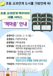 (원투원뉴스) 인천광역시교육청부평도서관은 9일부터 어린이자료실에서 초등교과 연계 책꾸러미 대출 서비스 ‘책마중’을 운영한다. 이번 서비스는 어린이가 독서를 통해 교과 내용을 이해할 수 있도록 지원해, 학습 이해도를 높이고 독서 흥미를 자연스럽게 확장하는 데 목적이 있다. 운영 방식은 초등 1학기 교육과정 수록 도서 및 연계도서 5권을 전용 가방과 함께 제공하는 ‘책꾸러미 대출’ 형태로 운영한다. 부평도서관 관계자는 “어린이들이 교과 과정과 연계된 독서를 통해 학교 교육을 보완할 수 있도록 학습 지원 기능을 강화할 예정”이라며 “이를 통해 아이들이 독서의 즐거움을 깨닫고 학습에 대한 흥미를 높이는 계기가 되길 바란다”고 말했다. 자세한 사항은 부평도서관 누리집을 확인하거나 어린이자료실로 문의하면 된다.