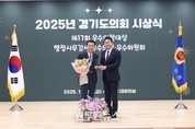 (원투원뉴스) 경기도의회 김성수 의원(더불어민주당, 안양1)이 26일 경기도의회 대회의실에서 열린 대한민국시도의회의장협의회 주관 ‘제17회 우수의정대상’ 시상식에서 우수의정대상을 수상하며 임기 내내 쉼 없이 펼쳐온 도민 중심의 열정적인 의정활동 공로를 인정받았다. 제11대 경기도의회 후반기 건설교통위원회 위원으로 활동 중인 김 의원은 2025년 한 해 동안 건설·교통·철도·물류는 물론 문화와 경제에 이르기까지 도민 실생활과 밀착된 현안 해결에 앞장서 왔다. 먼저, 김성수 의원은 도민의 삶의 질을 개선하고 ‘도민이 안전한 경기도’를 만들기 위한 입법 활동에 매진하여 건설교통분야에서 의미 있는 3개의 조례를 대표로 발의했다. 특히, 지상 철도로 인해 소음·진동 등 불편을 겪는 도민들을 위해 '경기도 철도지하화사업기금 설치 및 운용에 관한 조례'를 전국 최초로 대표 발의한 것은, 철도 지하화의 안정적인 재정 기반을 마련했다는 점에서 혁신적인 입법 사례로 꼽힌다. 또한, 김 의원은 대집행부질문과 행정사무감사를 통해 경기도정의 사각지대를 짚어내고 실질적인 개선책을 끌어냈다. 먼저, 대집행부질문에서는 ▲철도지하화사업의 성