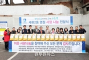 (원투원뉴스) 수원특례시의회 이재식 의장과 김은경 의원(더불어민주당, 세류1·2·3·권선1)은 설 명절을 맞아 2월 11일, 세류2동 행정복지센터 주차장에서 열린 ‘세류2동 설 명절 사랑나눔 전달식’에 참석해 이웃 사랑 나눔에 함께했다. 이날 전달식에는 수원특례시의회 관계자를 비롯해 세류2동장과 단체장, 동 관계자들이 참석했으며, 관내 취약계층이 따뜻한 명절을 보낼 수 있도록 마련된 명절 위문 물품 전달 행사가 진행됐다. 이번 사랑나눔 전달식은 지역사회 후원과 자발적인 참여로 마련된 것으로, 관내 수급자 및 차상위계층 등 취약계층 가구에 설 명절 위문 물품이 전달될 예정이다. 수원특례시의회 관계자는 “명절을 앞두고 지역사회와 함께 이웃을 살피는 자리에 함께하게 되어 뜻깊다”며 “의회도 앞으로 지역 공동체의 연대와 나눔 문화 확산을 위해 지속적으로 관심과 노력을 이어가겠다”고 밝혔다. 한편, 세류2동은 명절 사랑나눔 전달식을 비롯해 복지 사각지대 해소를 위한 다양한 나눔 활동을 지속적으로 추진하며, 따뜻한 지역공동체 조성에 힘쓰고 있다.