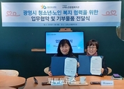 (원투원뉴스) 12월 18일 광명시청소년재단과 소하노인종합복지관은 광명 지역 내 세대 통합 복지 협력체계 구축을 위해 ‘청소년·노인 복지 협력 업무협약’을 체결했다. 이번 협약은 광명시 지역사회 복지 증진을 위해 청소년과 노인 세대 간 교류·협력체계를 구축하고 상호 협력함을 목적으로 한다. 양 기관은 각 기관이 보유한 전문 인력과 자원을 활용해 세대 간 이해를 높이고, 복지 향상에 기여하는 다양한 공동 프로그램을 추진할 계획이다. 특히, 지난 12월 13일에는 광명시청소년재단에서 청소년 20명과 재단 직원들이 함께 독거노인을 위한 고추장 100통을 직접 만들었다. 소하노인종합복지관을 통해 지역 내 독거노인에게 전달하기로 했으며, 이는 세대 간 나눔과 공감 문화를 실천한 의미 있는 기회가 됐다. 광명시청소년재단 박성숙 대표이사는 “세대를 연결하는 지역 공동체가 건강한 도시를 만든다”며 “이번 협약을 계기로 청소년과 어르신이 서로 배우고 성장하는 복지 모델을 구축하겠다”고 말했다. 소하노인종합복지관 서은경 관장은 “세대 간 교류는 노년의 삶의 만족도를 높이고 청소년에게는 배움의 기회를 제공한다”며, “