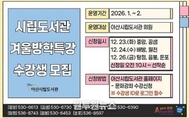 (원투원뉴스) 아산시가 오는 23일부터 2026년 아산시립도서관 겨울방학 특강 수강생을 모집한다. 아산시립도서관 7개관에서 겨울방학을 맞이하여 어린이를 대상으로 70여 개의 다양한 프로그램을 마련했다. 아울러 중앙도서관과 탕정온샘도서관은 청소년 대상 프로그램을, 둔포도서관은 성인 대상 프로그램을 같이 운영할 예정이다. 주요 프로그램으로는 △(중앙) 세상을 보는 눈, 생각을 쓰는 손 △(탕정) 겨울을 담은 웹툰 그리기 △(꿈샘) 내 마음 그림책 나라 △(배방) 꼬물꼬물 풍선공작소 △(월천) 겨울숲 탐험대 △(음봉) 코딩으로 읽는 이야기책 △(둔포) 그림책으로 떠나는 인형극 세상 등이다. 수강 신청은 12월 23일 오전 10시부터 아산시립도서관 누리집을 통해 선착순으로 진행되며, 도서관별 신청일자가 상이하므로 자세한 사항은 누리집 행사 안내를 참고하거나 각 도서관으로 문의하면 된다. 고영이 아산시립도서관장은 “이번 방학특강이 아이들에게 호기심과 창의력을 키우는 뜻깊은 시간이 되길 바란다”며 “도서관이 언제나 친근하고 편안한 배움의 공간이 되도록 노력하겠다”고 전했다.