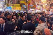 (원투원뉴스) 이재명 대통령은 23일 부산에서 열린 국무회의를 마친 뒤, 부산진구 부전역 인근에 위치한 부전시장을 방문해 시장을 방문한 시민들, 시장 상인들과 만나 민생 현장을 살폈다. 부산진구에 위치한 부전시장은 6.25 이후 피난민들이 터를 잡아 형성된 곳으로 상가주택 건물 형태의 중대형 시장이다. 주민들과 상인들은 갑작스레 방문한 이 대통령에게 손을 흔들고 박수를 치며 반가움을 표했다. 이 대통령은 시장 골목을 걸어 들어가 아몬드와 생선은 온누리상품권으로, 고추무침 등 반찬은 현금으로 구입했다. 장사가 안된다고 하소연하는 어르신에게 다가가 춥지 않으시냐 물으며 호박고구마, 밤고구마 등을 직접 구매했다. 이어 힘내시고 새해 복 많이 받으시라며 덕담을 건네고 격려했다. 이 대통령은 시장에서 마주친 부산시민들께 “장 보러 오셨어요?”라며 친근하게 인사를 건넸고, 상인들을 향해서는 “요즘 경기가 어떠냐, 많이 파셨냐?” 등을 물어봤다. 상인들은 “부산 경기가 어려운데 잘 살게 해 달라”, “부산에 와주셔서 감사하다”며 이 대통령의 손을 맞잡았다. 해병대 출신이라는