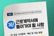 (원투원뉴스) 체크! 알바·취업에 성공하셨다면, 잊지말고 확인하세요! ■ 근로계약서에 꼭! 들어가야 할 사항 *근로기준법 제17조 제2항 ① 임금 구성항목·계산 및 지급 방법 ② 소정근로시간 ③ 휴일 ④ 연차 유급휴가 - 작성 후 반드시 1부를 노동자에게 교부 - 위반할 경우 사업주 대상 500만 원 이하의 벌금