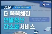 (원투원뉴스) 더 똑똑해진 연말정산 간소화 서비스 2026년 1월 15일 개통합니다! ■ 더~욱 새로워진 연말정산 간소화 서비스 기존 42개 자료+ 3개 자료 추가 1. 발달 재활 서비스 이용 증명 2. 장애인 활동 지원 급여 본인 부담금 자료 3. 체육시설 이용료 자료 ■ 더~욱 정교해진 소득 기준 초과 부양가족 명단 제공 소득 금액 100만 원 초과 부양가족에 대한 정보 연말정산 간소화 서비스 자료 조회 화면에서 안내 * 근로소득만 있는 경우 총급여 500만 원 - 소득 기준 초과 부양가족 내역 * 자세한 사항은 국세청 블로그를 참고해주세요! ■ AI 전화 챗봇 상담 - 국세 상담센터: ☎126→0번→0번(상담사 또는 AI 상담사 연결) - 세무서: 대표번호→2번→6번(AI 상담사 연결) (AI 상담사) · 주민등록번호 입력 후 본인인증 연말정산 간소화 자료 일괄 제공 현황, 부양가족의 간소화 자료 제공 동의 현황 등 · 생성형 AI 챗봇 상담 시범 운영 경로→홈택스 접속→홈택스 퀵메뉴→챗봇 상담 클릭 *홈택스 ■ 연말정산 유의 사항! 최종