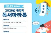 (원투원뉴스) 통영시립도서관은 지속적인 독서활동 권장을 통한 독서문화 저변 확대를 위해 오는 28일부터 11월 30일까지 '2026년 통영시 독서마라톤 대회'를 진행한다. 독서마라톤은 책 1쪽을 2m로 환산해 참가자가 책을 읽고, 독서기록일지를 작성해 사전에 설정한 코스에 따라 목표 독서량을 달성하는 범시민 독서 캠페인이다. 이번 활동은 ▲비진도(5km) ▲욕지도(10km) ▲장사도(21km) ▲소매물도(42.195km) 4개의 코스가 있으며, 소매물도 코스는 개인과 가족으로 나누어져 가족 모두가 협력해 코스를 완주할 수 있다. 또한 독서마라톤 연계 프로그램으로 경남독서한마당 선정도서를 읽고 독서기록 일지 작성 시 완주거리를 2배로 인정해주는 ▲JUMPING BOOK과 환경교육 선정도서를 읽고 감상문을 제출하면 ‘환경지킴이 인증서’와 함께 소정의 상품을 수여하는 ▲지구를 구하는 환경도서 읽기 등의 이벤트가 진행될 예정이다. 독서마라톤은 초등학생 이상 통영시립도서관 회원이면 누구나 참여 가능하며, 통영시립도서관 누리집'2026 통영시 독서마라톤 대회'페이지를 통해 대회 기간 동안 자유롭게 참가 신청할