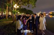 (원투원뉴스) 베트남을 국빈 방문한 이재명 대통령과 김혜경 여사는 23일(현지시간) 저녁 하노이 호안끼엠 호수 인근 구시가지를 깜짝 방문해 베트남 국민들과 소통하며 저녁 시간을 함께했다고 안귀령 부대변인이 서면 브리핑했다. 호안끼엠 호수는 하노이 중심부에 위치한 대표적인 명소로, 베트남 국민들의 휴식과 여가가 이뤄지는 공간이다. 이번 일정은 베트남 국민들의 일상적인 생활공간 속으로 자연스럽게 스며들어 보다 깊이 있는 교감과 이해를 나누기 위한 취지로 마련됐다고 안 부대변인이 설명했다. 베트남 국민들은 한국어로 "안녕하세요", "반갑습니다", 영어로 "웰컴 투 베트남" 등을 외치며 이재명 대통령 부부를 반갑게 맞이했다. 이에 이 대통령 부부는 베트남어로 '안녕하세요'인 "신짜오"로 화답하며, 베트남 국민들과 악수를 나누고 하이파이브를 하는 등 친근한 교감을 이어갔다. 특히 인근 건물 3층에 위치한 카페에서 손을 흔들며 환영의 뜻을 전하는 베트남 국민들에게도 일일이 손을 흔들어 인사를 건네며 현장의 분위기를 더욱 따뜻하게 만들었다. 이 대통령은 현지에서 초등학교에 다니고 있다는