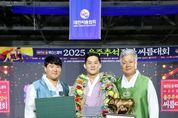 (원투원뉴스) 증평군청 인삼씨름단(감독 연승철, 코치 서수일) 소속 이완수 선수가 울산광역시 울주군 울주종합체육관에서 열린 ‘위더스제약 2025 울주추석장사씨름대회’에서 소백장사(72kg이하) 타이틀을 거머줬다. 이완수 선수는 4일 열린 결승전에서 울주군청 소속 김덕일 선수를 접전 끝에 3-2로 제압, 개인 통산 세 번째 장사에 오르는 영예를 안았다. 이 선수는 8강에서 임주성(MG새마을금고씨름단), 4강에서 이현서(의성군청) 선수를 각각 2-1로 승리하며 결승에 진출했다. 결승전에서는 홈그라운드 이점을 안고 나온 김덕일 선수에게 초반 두 판을 내줬으나, 3판째 김 선수의 경고패로 한 점을 만회하며 분위기를 바꿨다. 이후 두 판 연속 강력한 잡채기로 상대를 넘어뜨리며 극적인 역전승을 거뒀다. 이번 우승으로 이 선수는 지난 ‘2025 설날장사씨름대회’ 소백장사에 이어 올 시즌 2관왕을 달성, 씨름 명문 증평군청 인삼씨름단의 위상을 다시 한 번 높였다. 연승철 감독은 “증평군민들에게 추석장사씨름대회에서 승리의 소식을 안겨주게 돼 매우 기쁘다”며 “이번 대회 남은 체급에서도 좋은 성적을 거둘
