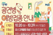 (원투원뉴스) 파주시는 반려견을 동반한 야외활동이 잦아지는 가을을 맞아 오는 20일부터 29일까지 생후 3개월 이상의 임신하지 않은 개를 대상으로 광견병 예방접종을 실시한다고 밝혔다. 광견병은 바이러스에 의해 사람과 동물 모두에게 감염될 수 있는 인수공통전염병으로, 잠복기가 상당히 길고 증세가 나타날 경우 치사율이 매우 높기 때문에 사람과 반려동물 모두를 위해 반려견은 매년 1회 반드시 예방접종할 것을 적극 권장하고 있다. 시는 하반기 광견병 예방사업을 위해 예방백신 4,500마리 분을 무상 지원하며, 예방접종을 희망하는 반려견 보호자는 33개 지정 동물병원을 방문해 시술비 1만 원만 부담하면 접종이 가능하다. 참여 동물병원 목록은 파주시청 누리집 공고문을 통해 확인할 수 있다. 동물병원이 없는 읍면지역은 시에서 직접 수의사를 파견해 순회접종을 진행하며, 이 경우 접종비 전액을 시에서 지원할 방침이다. 읍면지역 순회접종 일정은 해당 읍면 행정복지센터 산업팀에 문의하면 된다. 아울러 파주시는 야생동물의 광견병 전파를 막기 위해 광견병 미끼백신을 너구리 등 야생동물이 자주 출몰하는 관내 야산에 살포하는
