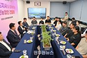 (원투원뉴스) 충남도가 당진 발전을 위해 스마트 양식단지와 수산식품 클러스터 조성, 탄소중립 선도 도시 조성 등에 도정 역량을 집중 투입한다. 김태흠 지사는 16일 민선8기 4년 차 시군 방문 네 번째 일정으로 당진시를 찾아 도민과 직접 소통하며 지속 가능한 미래 발전 방안을 모색했다. 김 지사는 이날 언론인 간담회, 도민과의 대화를 진행한 후, 스마트팜 사관학교, 당진항 석문지구 등 정책 현장을 방문했다. 도민과의 대화는 당진시청 대강당에서 오성환 시장과 시민 등 600여 명이 참석한 가운데 진행했다. 이 자리에서 김 지사는 민선8기 도정 보고 후, 당진 발전을 위해 △스마트 양식단지 및 수산식품 클러스터 조성 △탄소중립 선도 도시 조성 △제2서해대교 건설 △천주교 순례길 세계 명소화 사업 등을 차질없이 추진하겠다고 밝혔다. 스마트 양식단지는 국비 100억 원을 포함, 총 200억 원의 사업비를 2027년까지 투입해 석문간척지 일원에 4만㎡ 규모로 조성하는 사업으로, 지난 4월 중앙투자심사를 넘어서며 급물살을 타고 있다. 청년 어업인 등에게 임대할 이 양식단지에서는 첨