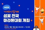 (원투원뉴스) 거제시민과 전국 마라톤 동호인들이 함께하는 '제8회 거제시장배 섬꽃 전국마라톤대회'가 오는 10월 12일 오전 9시 거제스포츠파크에서 열린다. 이번 대회는 거제시체육회가 주최하고 거제시육상연맹이 주관하며, 총 6,600여 명이 참가하는 대규모 생활체육 행사다. 대회는 △5km △10km △Half(산달도 일주) 등 3개 코스로 진행된다. 특히 Half 코스는 내간리 송곡마을과 소랑리 산달바다캠핑장, 산달삼거리와 산달보건진료소를 거쳐 산달도 일원을 달리는 구간으로, 바다와 섬이 어우러진 풍경 속에서 달릴 수 있어 참가자들의 큰 호응이 기대된다. 행사 당일에는 참가자 안전과 원활한 경기 진행을 위해 오전 9시부터 낮 12시까지 거제스포츠파크부터 산달도 일원의 도로가 전면 통제된다. 거제시는 시민 불편을 줄이기 위해 전광판 안내, 마을 방송, 우회도로 표지판 설치를 강화하고, 경찰·소방 등과 협력하여 행사안전관리 인력을 집중 배치해 교통·안전 관리에 만전을 기할 예정이다. 거제시 관계자는 “섬꽃 전국마라톤대회는 생활체육 활성화와 건강한 여가 문화 확산에 기여하는 의미 있는 행사”라며 “특히 대회 당일