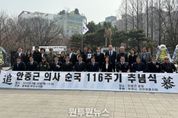 (원투원뉴스) 안중근 의사 순국일(3월 26일)을 맞아 그 애국정신을 기리기 위해 광복회 부천시지회 주관으로 안중근 의사 순국 116주기 추념식이 개최됐다. 이날 행사에는 장숙남 인천보훈지청장과 부천시장, 부천시의회 의장을 비롯해 보훈단체 관계자 및 부천시민 등 200여명이 참석해 자리를 빛냈다. 추념식은 헌화 및 분향을 시작으로 안중근 의사 약전 낭독, 추념사, 헌시 낭송, 어린이합창단 추모 공연 순으로 약 1시간여 동안 엄숙하게 진행됐다. 이날 추념식이 개최된 안중근 공원은 지난 2009년 하얼빈에서 국내 반입된 안중근 동상이 세워지며 ‘중동 공원’에서 ‘안중근 공원’으로 명칭 변경된 뜻깊은 곳이다. 장숙남 인천보훈지청장은 추념사에서 “서로 마음을 모아 위기를 극복하고 더 나은 미래를 만들어가야 한다는 의사님의 당부는 오늘의 우리 사회에 깊은 울림을 주고 있다”며, “안중근 의사의 의로운 생애와 정신이 미래세대에게 온전히 이어질 수 있도록 책임을 다하겠다”고 말했다.