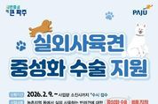 (원투원뉴스) 파주시는 실외에서 사육되는 반려견의 무분별한 번식을 예방하고 유실·유기 동물 발생을 줄이기 위해 녪년 실외사육견 중성화수술 지원사업’을 2월 9일부터 추진하고 있다. 해당 사업은 농촌지역 등에서 마당이나 울타리 안에서 기르는 5개월령 이상의 반려견을 대상으로 중성화 수술비를 지원하는 사업이다. 이를 통해 무분별한 번식으로 인한 유기견 발생을 사전에 차단하고, 개체 수를 효율적으로 관리하는 것을 목표로 한다. 지원 대상은 파주시 농촌지역 등 실외에서 반려 목적으로 개를 사육하는 시민이며, 신청하려면 거주지 관할 행정복지센터 또는 파주시농업기술센터 3층 동물관리과를 방문하면 된다. 대상자로 선정되면 지정 동물 병원과 사전 협의를 거쳐 중성화 수술을 진행하게 된다. 올해 사업 규모는 총 180마리로, 1마리당 최대 40만 원(암컷 기준)까지 지원하며 가구당 10마리 이내로 제한된다. 특히 기초생활수급자, 차상위계층, 65세 이상 고령자는 우선 지원 대상이다. 이광재 동물관리과장은 “실외사육견 중성화수술 지원사업은 유기견 증가를 예방하고 시민 불편을 줄이는 데 크게 기여할 것”이라며 “동물