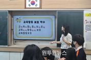 (원투원뉴스) 인천광역시교육청은 학생 눈높이에 맞춘 교육활동 침해 예방교육의 효과를 점검하고 현장의 의견을 수렴하기 위해 ‘찾아가는 교육활동보호 학생교실’ 운영 상황을 점검했다고 29일 밝혔다. 점검은 2025학년도 참여 학교를 대상으로 학생들의 참여 태도, 이해도, 만족도를 확인하고 교육 내용과 운영 방식의 실효성을 평가하는 방식으로 진행됐다. 교육청은 점검 결과를 바탕으로 예방교육 효과를 검증하고 현장 의견을 반영해 교육 운영을 내실화하며 맞춤형 지원을 강화해 상호 존중의 학교 문화를 확산할 계획이다. 인천시교육청 관계자는 “교육활동 보호는 학생들의 올바른 인식과 실천에서 출발한다”며 “현장의 의견을 바탕으로 예방 교육의 효과를 높여 상호 존중하는 학교 문화가 정착되도록 하겠다”고 말했다.