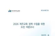(원투원뉴스) 제주특별자치도교육청은 ‘2026 제주교육’ 수립을 위해 도민 여론조사를 실시하고 그 결과로 도출된 교육공동체의 의견을 정책에 반영해 추진할 계획이라고 8일 밝혔다. 이번 조사는 도교육청이 지난달 6일부터 16일까지 19세 이상 제주도민 1001명을 대상으로 진행했으며 ‘제주교육 역점과제, 2025년 제주교육 만족 정책, 교육발전특구 시범사업, 학령인구 감소 대비, 적정규모학교 육성’등을 주제로 실시됐다. 2025년 제주교육 만족 정책 도민들이 가장 만족하는 정책은 생활 속 인성교육 프로그램 운영학교 지원(30.1%), 학생 진로‧희망을 반영한 고교체제 개편 추진(21.6%), 학교폭력 예방활동 및 선도학교 지원(21.9%), 학생맞춤형 통합지원 선도학교 운영(18.0%)으로 조사됐다. 제주교육 역점과제 앞으로 더욱 관심을 두고 추진해야 할 과제로는 인성교육 내실화(19.0%), 학교폭력 예방 강화(15.3%), 365일 안전한 학교 환경 조성(8.8%) 순으로 나타났다. 교육발전특구 시범사업 중에서 앞으로 중점 추진해야 할 과제로는 인성 함양 교육 추진(20.8%)과 건강한 교육공동체