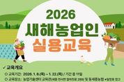 (원투원뉴스) 세종특별자치시 농업기술센터가 내년 1월 8일부터 22일까지 센터 교육관 등에서 새해농업인실용교육을 운영한다. 교육은 모두 10개 과정으로 구성됐으며 총 11회에 걸쳐 농업인들에게 다양한 품목별 맞춤형 기술을 전하기 위해 마련됐다. 특히 이번 교육에서는 수박과 약용작물, 농기계안전, 인공지능 활용 등 5개 과정을 새롭게 신설했다. 또한, 벼·밭작물과 농산물우수관리인증, 복숭아, 배, 고추 등 주요 품목 과정을 함께 구성했다. 아울러 교육 시작 전에 주요 농업 정책과 최근 현안 이슈를 영상과 책자, 부록자료로 안내하면서 농업인의 영농 계획 수립에 실질적인 도움을 줄 예정이다. 피옥자 소장은 “이번 교육이 품목별 기술과 디지털 역량을 함께 높이는 계기가 되길 바란다”며 “내년 영농 준비에 도움이 되는 맞춤형 교육을 지속 확대하겠다”고 말했다.