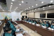 (원투원뉴스) 김포시는 최근 급격한 기온 강하로 한랭질환 등 한파 피해 예방을 위해 지난 21일 기후 위기 대응 전략 대책 회의를 개최했다. 박영상 행정안전국장 주재로 진행된 이날 회의에서는 관련 17개 부서장과 김포시 자율방재단이 참석한 가운데 ▲취약계층 보호 대책 ▲시설물 안전 관리 ▲농·축·수산 분야 피해 예방 ▲비상 대응체계 운영 등 분야별 한파 대응 상황을 집중 점검했다. 특히, 노인, 어린이, 장애인 등 한파취약계층에 대한 대책을 강구하는 한편, 현재 운영 중인 한파 쉼터와 온기 텐트 관리 실태를 점검했다. 또한, 상수도 동파 및 시설물 결빙 사고를 예방하기 위해 사전 점검을 강화하고, 농·축·수산 분야에서는 취약 시설 점검과 한파 대응 요령을 안내하는 등 피해 예방 활동을 강화하기로 했다. 김포시 관계자는 “한파로 인한 시민 불편과 피해를 최소화하기 위해 부서 간 협업을 강화하고, 상황 발생 시 신속하게 대응할 수 있는 체계를 유지하겠다”며 “시민들께서는 한파 행동 요령을 숙지하고, 위험 상황 발생 시 즉시 신고해 주시길 바란다”라고 말했다. 김포시는 앞으로도 기상 상황을