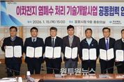 (원투원뉴스) 포항시는 15일 시청 중회의실에서 이차전지 염폐수 처리를 위한 기술개발 공모사업에 대비한 ‘이차전지 염폐수 처리 기술개발 공동협력 업무협약’을 체결했다. 이번 협약은 지난달 19일 기후에너지환경부가 공고한 ‘이차전지 염폐수 처리 기술개발사업’과 관련해 공모 선정 이전 단계에서 향후 기술 실증과 현장 적용을 지원하기 위한 지방정부와 참여기업 간 공동 협력체계 구축을 위해 추진됐다. 이날 협약식에는 포항시 일자리경제국장을 비롯해 경상북도 기후환경국장과 공모사업 주관기업인 ㈜범우, ㈜에코프로HN, ㈜테크윈, ㈜효림이엔아이, ㈜유앤유, ㈜엔이비 등 관계자 17명이 참석했다. 이차전지 염폐수는 고염분·고농도 특성으로 공공 처리가 어려워 현재 기업별로 증발농축법(MVR) 등 개별 처리시설을 설치해 대응하고 있으나 국내외 환경규제 강화와 환경보전에 대한 사회적 책임 증대, 산업용 전기요금 인상 등으로 기업 단독 대응에는 한계가 있으며, 이는 장기적으로 국가 이차전지 산업의 원가 경쟁력에도 영향을 미치고 있다. 이에 기후에너지환경부는 국가 첨단산업인 이차전지 산업의 지속가능성과 글로벌 경쟁력 강화를