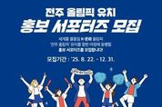 (원투원뉴스) 전북특별자치도는 국민과 함께 전주 올림픽 유치의 꿈을 실현하기 위해 ‘전주 올림픽 유치 홍보 서포터즈’를 모집한다고 밝혔다. 모집 기간은 오는 8월 22일부터 12월 31일까지이며, 전주 올림픽 유치에 관심 있는 국민 누구나 신청할 수 있다. 신청은 전북특별자치도 누리집에서 본인 인증 후 가능하다. 홍보 서포터즈는 전주 올림픽 관련 소식을 개인 SNS, 유튜브 등 다양한 온라인 채널을 통해 자유로운 형식으로 홍보하게 된다. 또한 전북특별자치도 공식 채널의 올림픽 게시물을 공유·좋아요하는 방식으로 확산에 동참하고, 챌린지·해시태그 캠페인 등 주요 온라인 행사에도 참여할 예정이다. 모집 인원에는 제한이 없으며, 가입자 전원에게는 온라인 위촉장이 발급된다. 이와 함께 연말에는 우수 활동자를 선정해 도지사 표창과 전주 올림픽 유치 홍보 서포터즈 키트 등 인센티브를 제공할 계획이다. 유희숙 전북자치도 2036하계올림픽유치단장은 “이번 서포터즈는 국민 한 분 한 분이 전주 올림픽을 알리고 만들어가는 주인공이라는 취지로 마련됐다”며 “소속감을 바탕으로 우리 모두의 꿈을 현실로 만드는 여정에 동참해