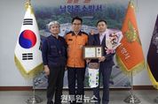 (원투원뉴스) 남양주소방서는 2일, 다산동 오피스텔 화재 현장에서 신속한 초기 대응으로 인명과 재산 피해를 예방한 관리실 직원 김보환 씨(56세)에게 소방활동 유공자 표창을 수여했다고 밝혔다. 김 씨는 지난 8월 29일 새벽 발생한 오피스텔 화재 당시 손과 발에 경미한 화상을 입으면서도 소화기를 사용해 불길을 진압하고 거주자를 안전하게 대피시켜 큰 피해를 막았다. 남양주소방서는 이러한 김 씨의 용기와 희생정신이 지역 사회의 귀감이 된다고 설명했다. 표창을 받은 김 씨는 “오피스텔에는 법정 소방시설(소화기, 감지기 등)이 설치돼 있지만 화재는 언제든 발생할 수 있다”며 “평소 소방시설을 점검하고 사용하는 방법을 익히는 것이 중요하다. 특히 오피스텔은 주택용 소방시설 설치 의무대상은 아니지만, 세대 내에 자율적으로 소화기나 단독경보형 감지기를 추가로 비치한다면 안전을 더욱 높일 수 있다”고 소감을 전했다. 나윤호 남양주소방서장은 “김보환 씨의 조언처럼 우리 소방서도 시민 여러분께 주택용 소방시설 설치와 생활 속 화재 예방 실천을 적극 권장한다”며 “남양주시민 모두가 작은 관심과 준비로 큰 안전을 지켜 주길 바란다”