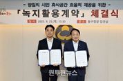 (원투원뉴스) 인천 동구는 지난 25일 동원로엑스㈜(인천㈜ 대표이사 최안석)와‘녹지활용계약’을 체결했다고 밝혔다. 인천 최초로 진행된 이번 계약은 민간기업이 소유한 사유지를 주민에게 열린 녹지로 제공하는 새로운 방식의 민관 협력 모델이다. ‘녹지활용계약’은 ‘도시공원 및 녹지 등에 관한 법률’ 제12조에 근거한 제도로, 토지 소유자와 지자체가 계약을 통해 도시지역 내 식생이 양호한 사유지를 주민에게 제공할 수 있도록 하고 있다. 이번 계약 대상지는 동원로엑스가 소유한 인천 동구 만석동 2-252번지 내 약 9천100㎡(2천760평) 규모의 토지다. 해당 부지는 공시지가만 약 79억 원에 달하는 대규모 사유지로, 국유지 대부했다고 가정해보면 연간 약 1억 6천500만 원의 대부료가 발생된다. 이번 민관협력 모델에서는 동원로엑스가 이 토지를 무상으로 동구에 임대하면, 동구는 계약 면적에 대한 재산세를 감면하여 ‘건축법’상 의무 조경으로 인정하기로 했다. 계약기간은 최초 10년이며, 이후 5년 단위로 갱신이 가능하다. 동구는 해당 부지를 단순 개방에 그치지 않고, 주민들이 쾌적하게 이용할 수 있도록 녹지