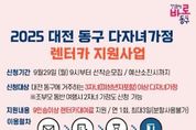 (원투원뉴스) 대전 동구는 다자녀 가정의 여가활동 지원과 아이 키우기 좋은 환경 조성을 위해 ‘2025년 다자녀 가정 렌터카 지원사업’을 본격 추진, 이달 29일부터 참여자를 모집한다고 밝혔다. 이번 사업은 총 2천만 원의 고향사랑기금으로 추진되며, 신청 대상은 대전 동구에 주소를 둔 3자녀 이상 가정(자녀 중 1명 이상이 미성년인 경우)이다. 단, 2자녀 가정이라도 조부모와 함께 여행 후 증빙사진을 제출할 수 있는 경우 신청이 가능하다. 지원 범위는 9인승 이상 렌터카 대여료이며, 유류비와 하이패스 요금 등 부대 비용은 본인 부담이다. 차량 이용 기간은 오는 10월 1일부터 12월 15일까지이며, 가구당 최대 3일간 이용할 수 있다. 선정된 가정은 쏘카 앱 전용 계정을 통해 우선 결제 후 차량을 이용하고, 청구서와 통장사본 등 증빙자료를 제출하면 익월 10일 이내 이용료를 환급받을 수 있다. 구는 사업 추진에 앞서 지난 22일 국내 모빌리티 플랫폼 ㈜쏘카와 협약을 체결하고, 다자녀 가정이 평일 60%, 주말 50% 할인된 요금으로 카셰어링을 이용할 수 있도록 지원체계를 마