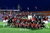 (원투원뉴스) 김천상무가 포항전 6연승을 달렸다. 김천상무프로축구단이 9월 27일 토요일 16시 30분, 김천종합운동장에서 열린 ’하나은행 K리그1 2025‘ 31R 홈경기에서 포항스틸러스에 2대 0으로 승리했다. 이날 승리로 김천상무는 리그 2연승과 함께 포항전 6연승, 2년 연속 파이널 A그룹 진출이라는 기록을 세웠다. 김천상무는 4-4-2 포메이션을 가동했다. 골키퍼 장갑은 이주현이 꼈다. 백포는 박철우, 박찬용, 김강산, 이정택이 구성했다. 중원에는 맹성웅과 이승원이 선발로 나섰고, 양쪽 날개에는 김승섭과 이동준이 선발 출전했다. 최전방에는 나란히 두 자릿수 득점을 달리는 박상혁과 이동경이 포진했다. 한국전력기술 브랜드 데이로 시작한 전반, 상대 퇴장으로 수적 우위! 김천상무는 한국전력기술 브랜드 데이를 맞아 신선하고 다양한 홈경기 이벤트로 홈팬을 맞이했다. 이어 경기 시작 전 플레이어 에스코트, 매치볼 딜리버리, 김승섭의 K리그 통산 200경기 출전 기념 시상과 시축으로 승리의 기운을 불어넣었다. 김천상