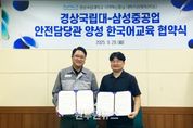 (원투원뉴스) 경상국립대학교 RISE사업단 산학친화프로그램과 삼성중공업은 9월 29일 오후 가좌캠퍼스 언어교육실 국제교육부처장실에서 외국인 근로자의 안전한 근로환경 조성과 지역사회 정주 여건 조성을 위해 ‘외국인 근로자 대상 한국어 교육체계 구축에 관한 업무협약’을 체결했다. 이 협약은 경상국립대학교 RISE사업단의 지역 연계협력 강화의 일환으로, 삼성중공업에 근무하는 외국인 근로자의 안전 역량을 강화하고 지역사회 적응을 돕기 위한 한국어 교육체계를 산학 공동으로 개발·운영하기 위한 것이다. 이를 통해 산업현장 맞춤형 실용 한국어 교육 프로그램을 개발하고 산학협력에 기초한 유기적인 교육지원 체계를 구축할 수 있을 것으로 기대된다. 이날 협약체결식에는 경상국립대학교 RISE사업단 산학친화프로그램 부수현 책임교수, 국어교육학과 유해준 교수와 삼성중공업 이상억 총무팀장 등 7명이 참석했다. 행사는 전체 사업 소개, 협약 내용 설명, 협약서 서명, 기념촬영 등의 순으로 진행됐다. 양 기관은 협약서에서 ▲외국인 근로자 대상 한국어 교육 프로그램 개발 및 운영 ▲외국인 안전담당관 양성 및 한국어 교육 기반 안전교육강사 육