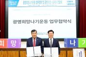 (원투원뉴스) 광명시가 민관 협력을 기반으로 복지 사각지대 시민을 위한 지원 체계를 강화한다. 시는 9일 시청 대회의실에서 광명시사회복지협의회와 ‘광명희망나기운동사업’ 업무협약을 체결하고 민관 협력 복지사업을 이어가기로 했다. 이번 재협약은 기존 협약(2023.3.7~2026.3.6.)이 지난 6일 만료되면서 사업을 안정적으로 운영하기 위해 추진했으며, 협약 기간은 2026년 3월 7일부터 2029년 3월 6일까지 3년이다. 이날 협약식에서는 ‘광명희망나기운동’ 헙무협약과 함께 복지 사각지대 시민 지원을 위한 ‘광명 희망-올케어(All-Care)’ 전달식도 열렸다. ‘광명희망나기운동사업’은 법과 제도 지원이 닿지 않는 시민을 돕기 위해 추진하는 광명시 대표 민관 협력 복지사업이다. 광명시는 정책과 예산 지원, 대상자 발굴을 맡고, 광명희망나기운동본부는 자원 모금과 배분을 담당한다. 지역 복지기관은 현장에서 사업을 수행한다. 시는 이번 업무협약을 계기로 광명시사회복지협의회와 함께 ‘시민 누구도 소외되지 않는 촘촘한 복지도시 광명’을 목표로 위기 예방부터 대응, 회복까지 이어지