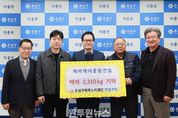 (원투원뉴스) 대전 유성구는 연말을 맞아 지역사회 곳곳에서 다양한 나눔이 이어지고 있다. 제이케이종합건설(대표 조부영)은 27일 지역 경로당 지원을 위해 백미 2,310kg을 유성구행복누리재단에 기탁했다. 백미는 봉명동 일원에서 진행된 제이케이종합건설의 ‘오피스텔 및 근린생활시설 신축공사 기공식’에서 화환 대신 받은 쌀로 마련됐으며, 관내 경로당 101개소에 배분될 예정이다. 또한, 대전도시환경산업광산기업㈜(대표 김용욱)에서는 저소득층 지원을 위한 후원금 500만 원을 기탁했다. 후원금은 유성구행복누리재단을 통해 저소득 가정의 생계비와 의료비 등 긴급복지 사업에 활용될 예정이다. 같은 날 이김병원(대표원장 이종주)에서도 임직원이 자발적으로 모은 성금 100만 원을 진잠동에 기탁했으며, 성금은 진잠동 지역사회보장협의체의 김장김치·반찬 지원 사업에 활용될 계획이다. 정용래 유성구청장은 “어려운 이웃을 위한 나눔 문화가 지역사회에 확산하고 있다”라며 “지역의 도움이 필요한 이웃을 위해 민관이 협력해 복지 안전망을 강화하겠다”라고 말했다.