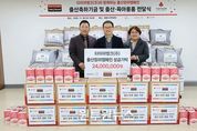 (원투원뉴스) 타이어 유통 전문기업 타이어뱅크㈜(회장 김정규)가 저출산 위기에 빠진 대한민국의 출산율 향상을 위해 다시 한번 따듯한 나눔을 실천하며 출산 가정에 희망을 전달했다. 타이어뱅크는 세종시 가족센터를 찾아 세종시 관내 형편이 어려운 출산 가정을 위해 출산 축하 기금과 출산용품을 전달했다. 이번 기부는 그동안 출산율 향상을 위해 출산장려캠페인 등 출산과 육아를 위한 각종 기부 활동으로 기업 차원에서 다양한 활동을 펼쳐왔던 타이어뱅크가 출산율 향상을 위한 노력의 연장선상에서 진행됐다. 전달식에 직접 참석한 타이어뱅크 김종배 대표이사는“세종의 미래를 위해 세종시 사회복지공동모금회와 가족센터가 큰 역할을 함에 있어 늘 감사드린다.”며“세종의 탄탄한 미래를 만들어가는 것에 지역 기업으로서 타이어뱅크가 보탬이 될 수 있어 영광”이라고 밝혔다. 세종사회복지공동모금회 박상혁 회장은“타이어뱅크의 연이은 출산 가정 지원이 세종의 미래를 밝게 변화시키고 있다.”며“민간기업 최초 고객 대상 출산장려캠페인 등 출산율 향상이라는 큰 가치 실현에 기여하는 타이어뱅크의 노력에 모금회 역시 적극 동참할 것”이라고 밝혔다