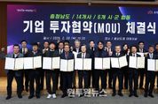 (원투원뉴스) 국내외 기업 투자 유치를 핵심 과제로 추진 중인 충남도가 이번엔 14개 기업으로부터 5000억 원 이상의 투자를 이끌어내며 충남의 지속 가능한 미래 발전 발판을 다졌다. 김태흠 지사는 26일 도청 대회의실에서 김석필 천안시장 권한대행 등 6개 시군 단체장 또는 부단체장, 이동주 성창오토텍 대표이사 등 14개 기업 대표와 투자협약을 체결했다. 협약에 따르면, 14개 기업은 2029년까지 6개 시군 산업단지 등 50만 64㎡의 부지에 총 5090억 원을 투자해 생산시설을 신·증설하거나 이전한다. 이들 기업이 계획대로 가동할 경우 신규 고용 창출 인원은 526명으로 예상된다. 천안 북부BIT일반산단에는 4개 기업이 생산시설을 신·증설한다. 자동차용 부품업체인 성창오토텍이 2만 3225㎡부지에 542억 원을 투자해 공장을 새롭게 만든다. 또 반도체·PCB 표면 처리 장비 전문업체인 하이쎄미코가 132억 원을 투자해 6311㎡부지에 공장을 신설하며, 산업용 로봇 제조업체 아라는 100억 원을 투자해 1100㎡부지에 생산시설을 확장한다. 수입 과일 유통·가공