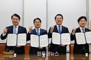 (원투원뉴스) 광주시·전남도·광주시교육청·전남도교육청이 광주·전남 행정 대통합에 함께 하기로 했다. 강기정 광주광역시장, 김영록 전라남도지사, 이정선 광주시교육감, 김대중 전남도교육감은 14일 오후 국회에서 ‘4자 협의체 간담회’를 갖고, 통합 특별시와 특별시교육청 출범을 목표로 ‘광주.전남 대통합을 위한 공동 합의문’을 발표했다. 이들은 공동 합의문에서 4개 행정기관은 광주.전남 통합 광역지방정부와 광역지방교육청 출범이 역사적 사명임을 공감하며, 상호 존중과 신뢰를 바탕으로 최적의 통합안을 마련하기로 했다. ‘4자 협의체’는 ‘(가칭)광주전남특별시 설치를 위한 특별법’이 2026년 2월 내 국회를 통과할 수 있도록 상호 긴밀히 협력하고, 시.도의회와 함께 공감대 확산을 위해 설명회, 토론회, 간담회 등 공청회를 시·군·구별로 개최한다. 또 행정‧교육행정 통합 이후에도 광주 5개 자치구와 전남 22개 시.군이 스스로의 정체성을 지켜 나가도록 공동 협력하고, 교육이 지역발전의 초석임을 인식하며 광주.전남 행정.교육행정 통합 과정에서 교육자치를 보장하기로 명시했다. 합의문에는 통합 특별시와
